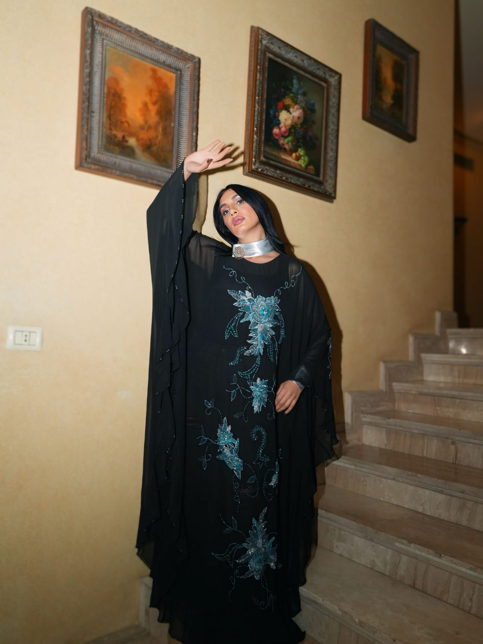Chiffon poncho with handmade embriodered tulle & multi-colored stones