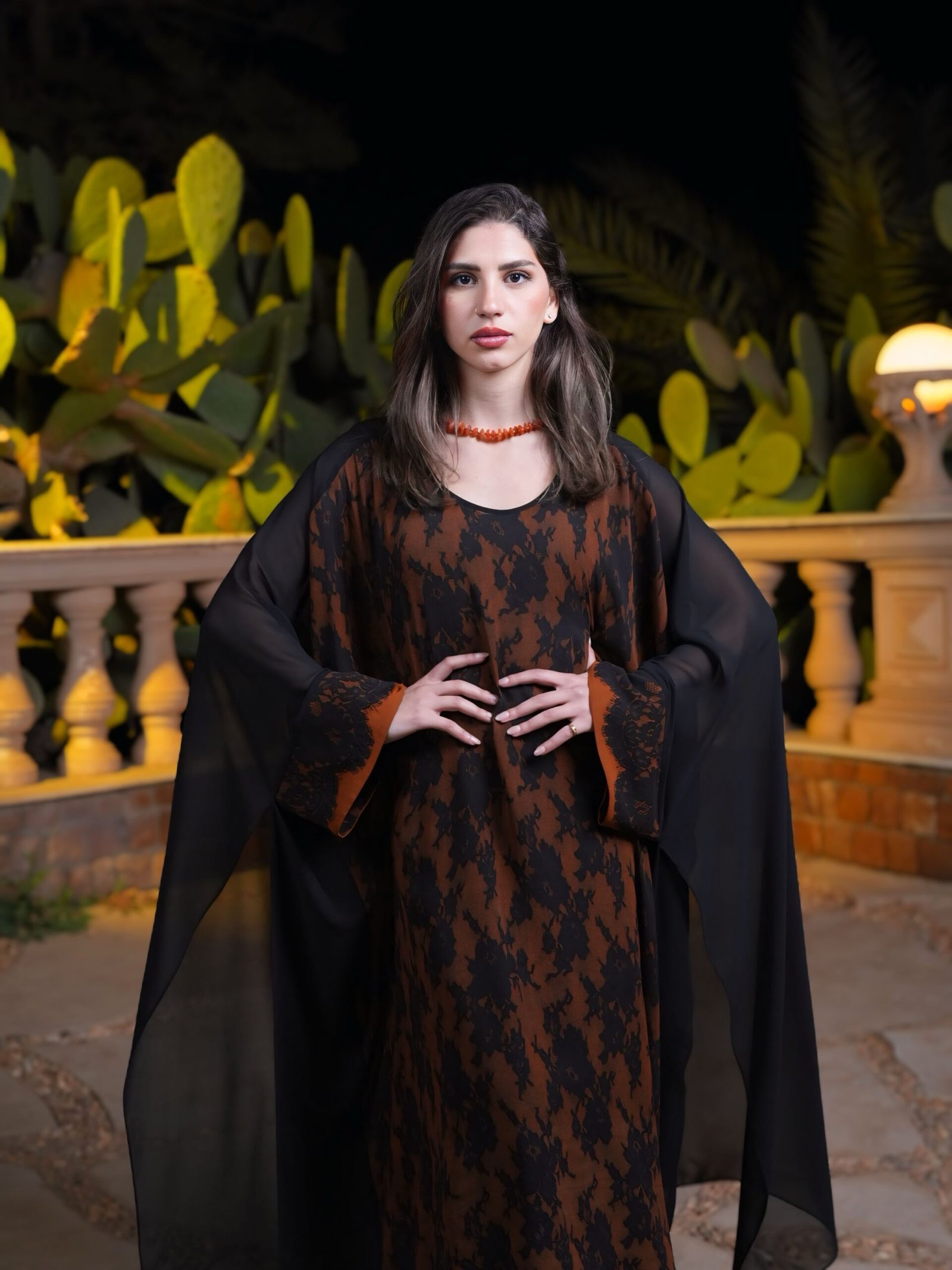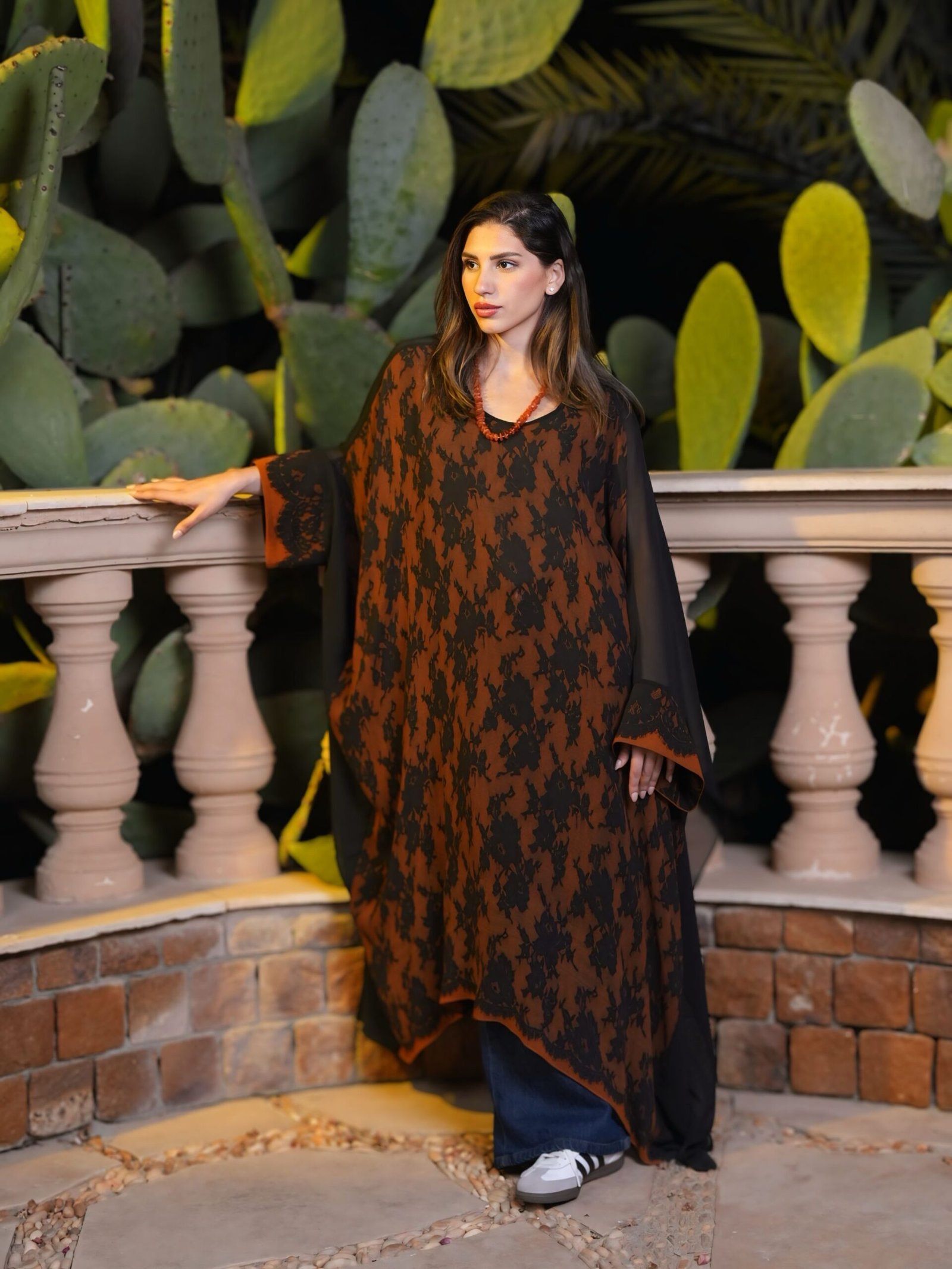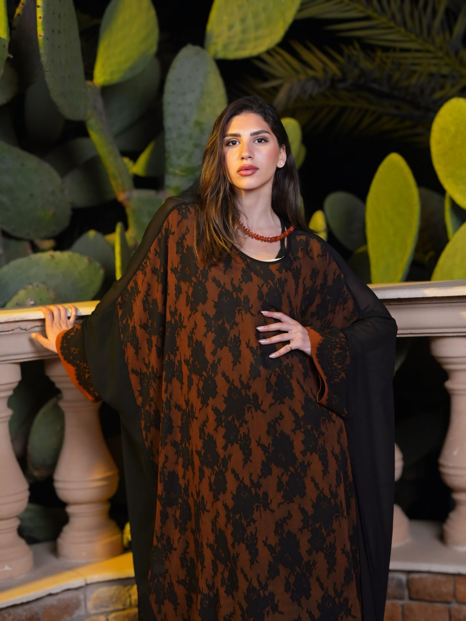 Floral natural chiffon poncho