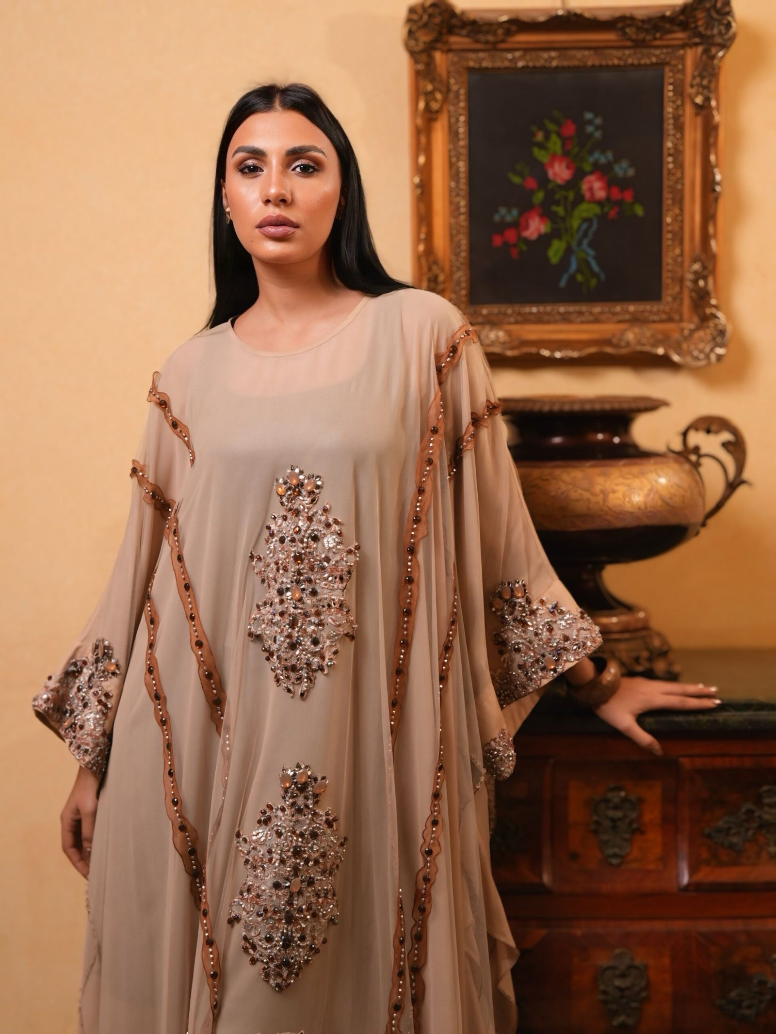 Handmade Double layered Tulle and chiffon poncho with appliques and embroidery