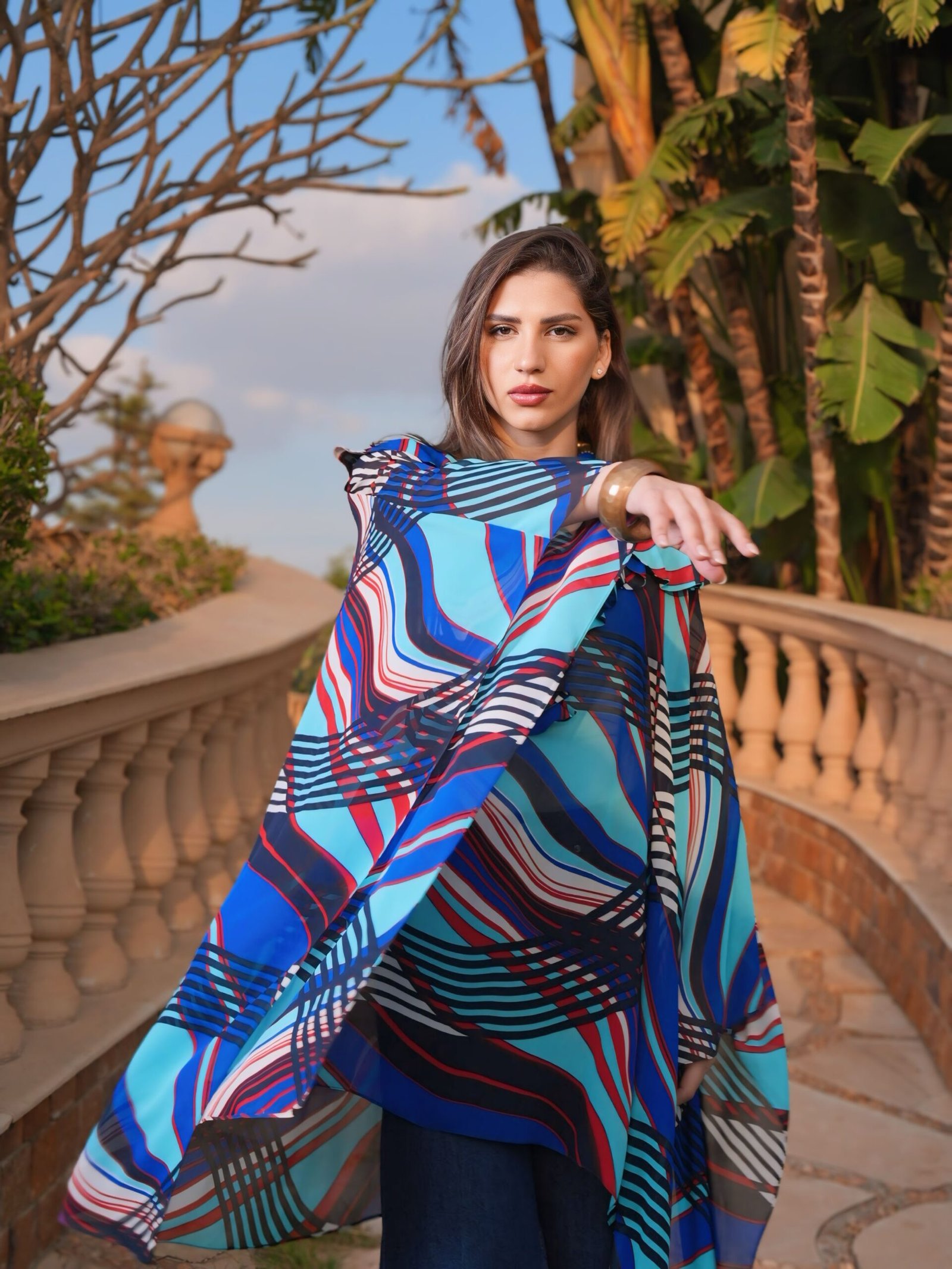 Ruffled Knee-length stripped Crepe chiffon poncho